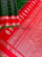 Dark Green Shade Gadwal Silk Saree with Red Kuttu Temple Thread-Work Borders